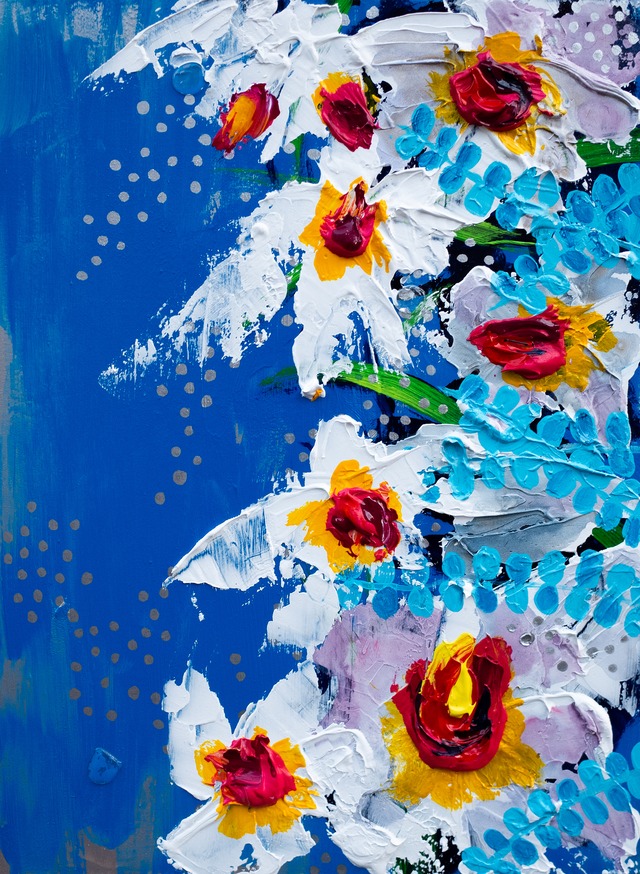 100×100mm 2025 年 mixedmedia on wood 額装無し サイン 裏面にあり 堂々と咲く生花を擬人化し、美しいだけではなく、儚さ、切なさ、悲しみ、苦しみ、強さ、弱さ、など生きていく上でのさまざまな感情を色に込めています。 木パネルにアクリル絵の具を厚盛りにしています。透明アクリル台座付きで、机の上に置いても楽しめます。 natsum 菜摘 花 ファインアート 抽象画 コンテンポラリーアート ポートレート 女性 絵画 ドローイング アート ポップアート フラワー 現代アート コンテンポラリーアート flower girl 少女