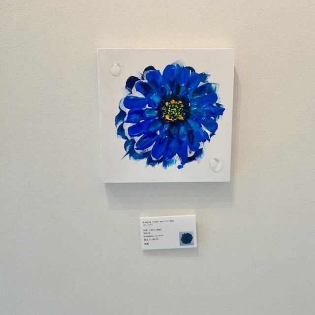 木パネルに厚盛りのアクリル絵の具とレジンを使った作品で、額縁不要でそのまま壁に掛けてお楽しみいただけます。