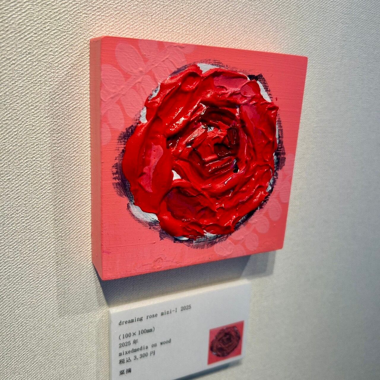 木パネルにアクリル絵の具を厚盛りにしています。透明アクリル台座付きで、机の上に置いても楽しめます。