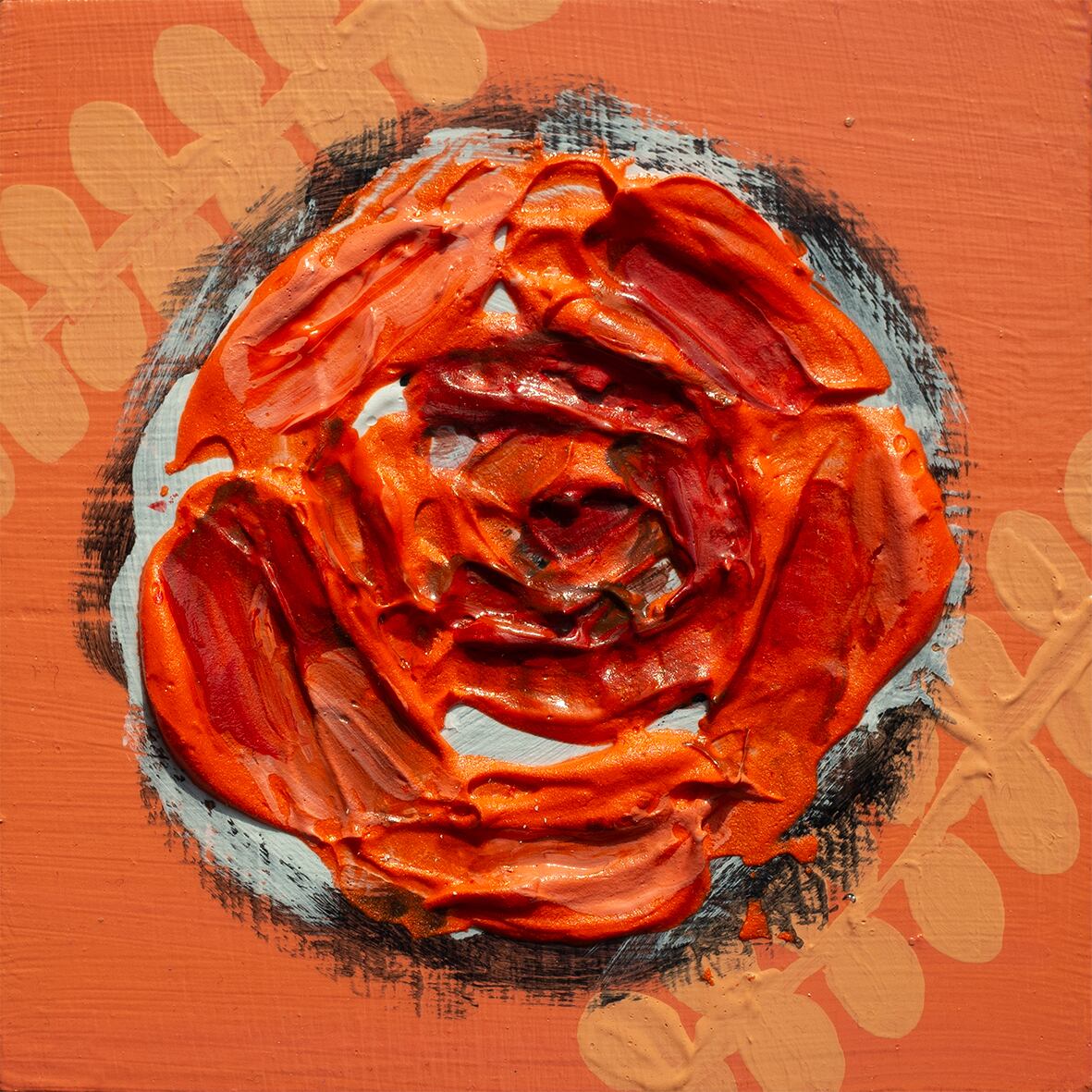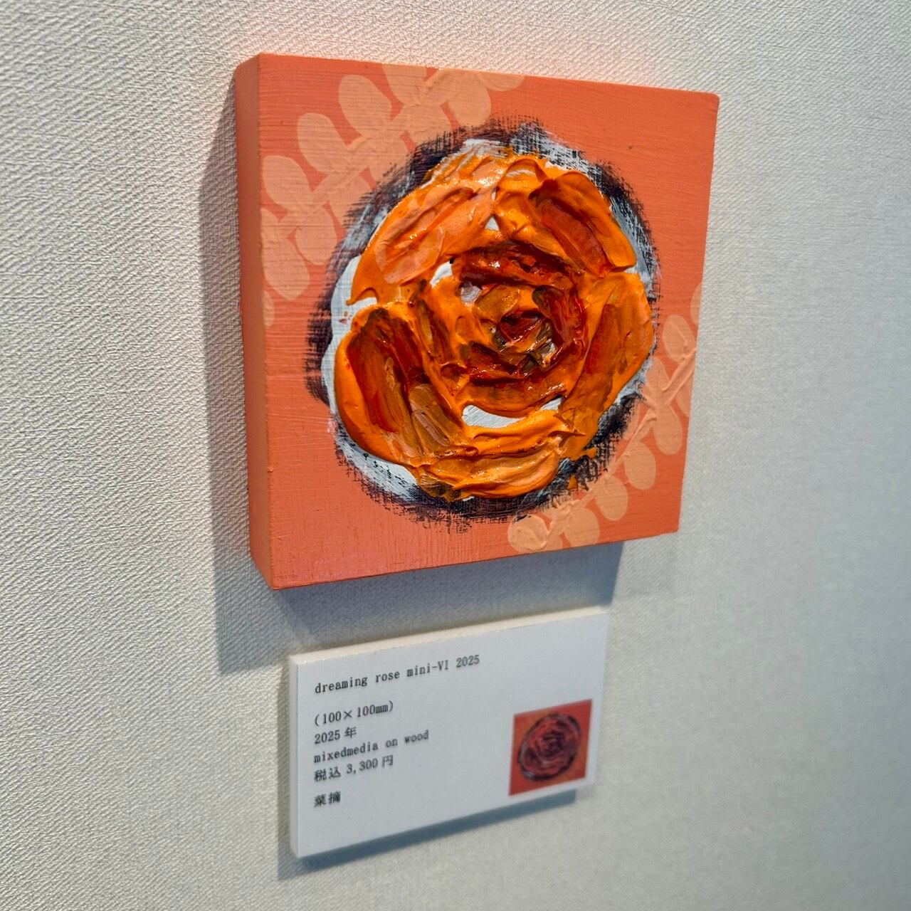木パネルにアクリル絵の具を厚盛りにしています。透明アクリル台座付きで、机の上に置いても楽しめます。