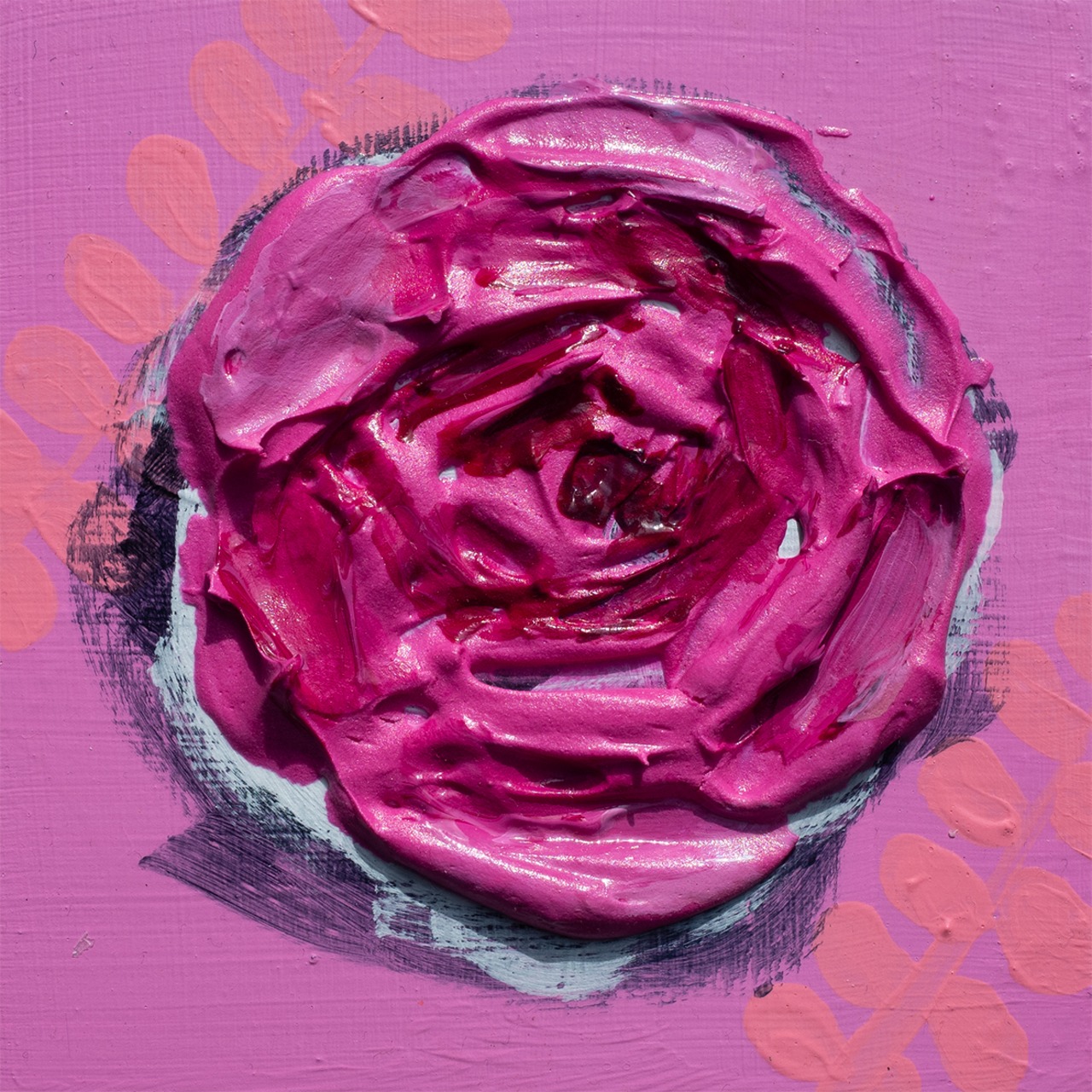 木パネルにアクリル絵の具を厚盛りにしています。透明アクリル台座付きで、机の上に置いても楽しめます。