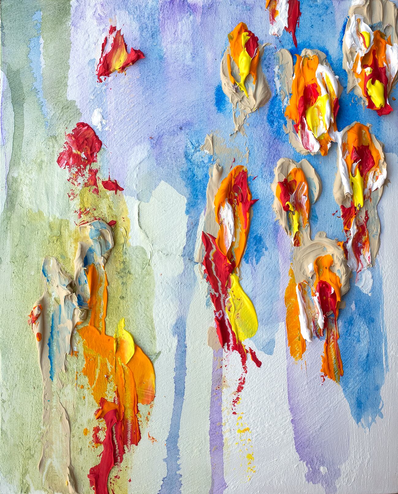 堂々と咲く生花を擬人化し、生きていく上でのさまざまな感情を色に込めた作。