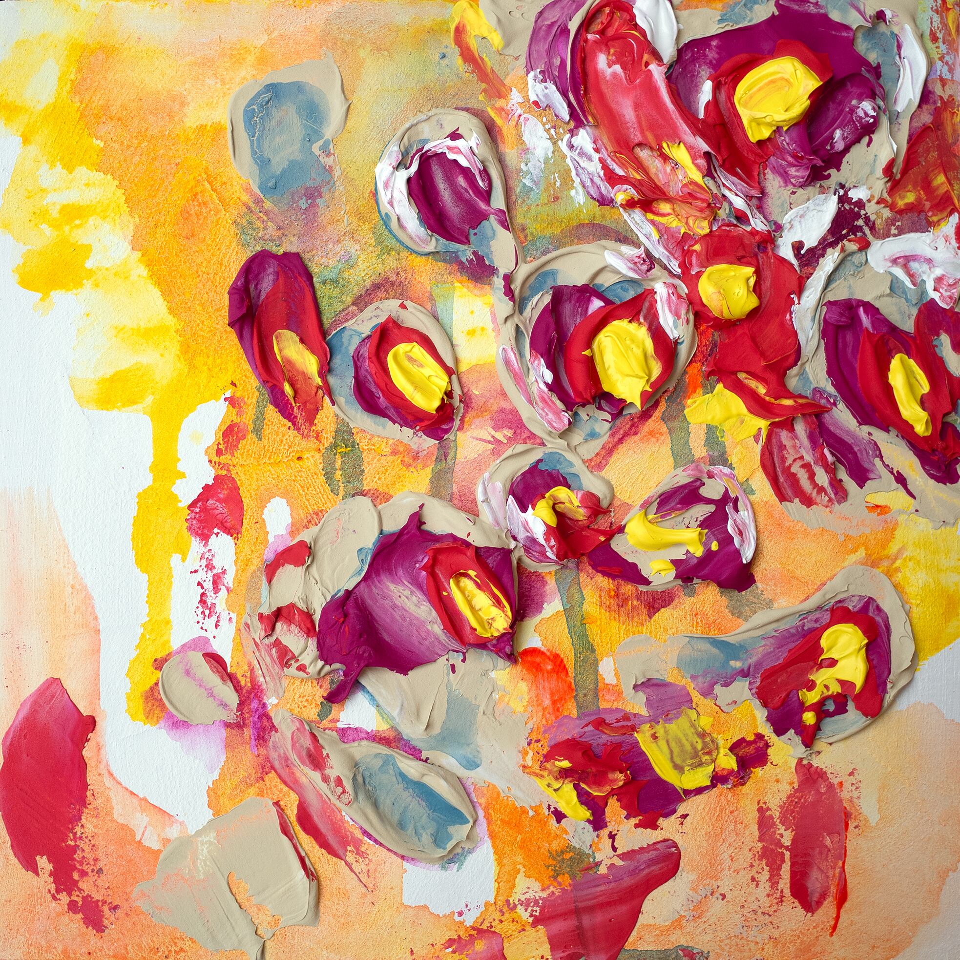 堂々と咲く生花を擬人化し、生きていく上でのさまざまな感情を色に込めた作。